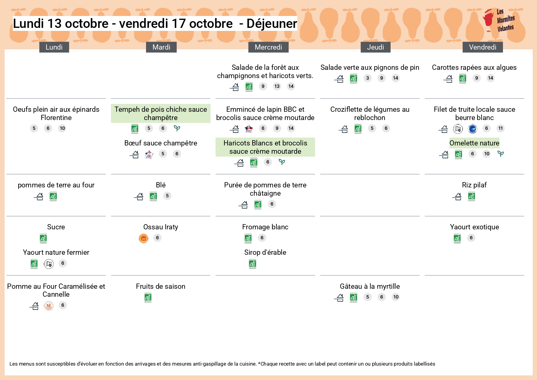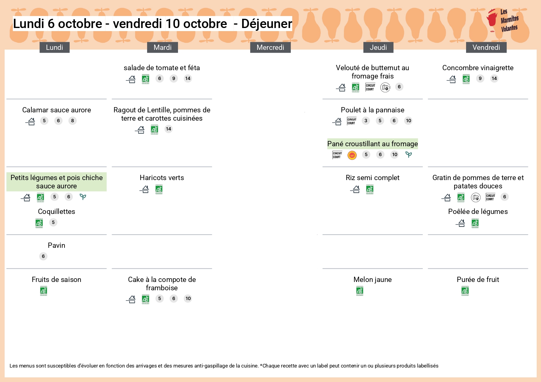 Menus de la cantine